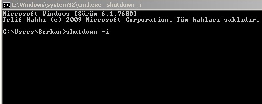 Sırasıyla Başlat’ı, Tüm Programlar’ı, Donatılar’ı ve Komut İstemi’ni tıklatın. Uzaktan Kapat iletişim kutusunu (Shutdown.exe) görüntülemek için shutdown /i yazın.